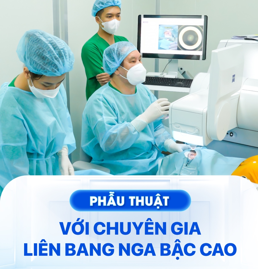 Đội ngũ TS.BS Liên Bang Nga giàu kinh nghiệm như: TS.BS Boris Fattakhov – Bàn tay vàng phẫu thuật châu Âu; TS.BS Merzlov Denis Evgenievich - Giám đốc chuyên môn, chuyên gia phẫu thuật nhãn khoa bậc cao; BS Drach Nikolai Mikhailovich - chuyên gia nhãn khoa bậc cao...