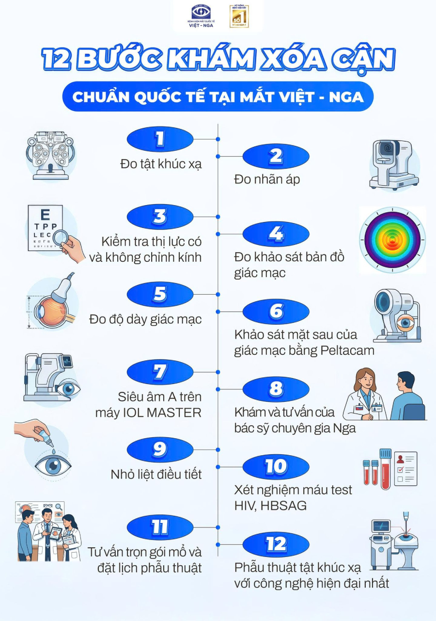 Với quy trình khám – xóa cận chuyên sâu kỹ lưỡng, khách hàng sẽ xác định được phương pháp xóa cận phù hợp; phẫu thuật an toàn, nhanh chóng hồi phục thị lực.