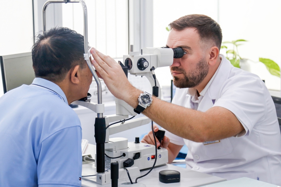 BS Chernov Evgenii – Chuyên gia phẫu thuật đục thủy tinh thể bậc cao thăm khám cho bệnh nhân