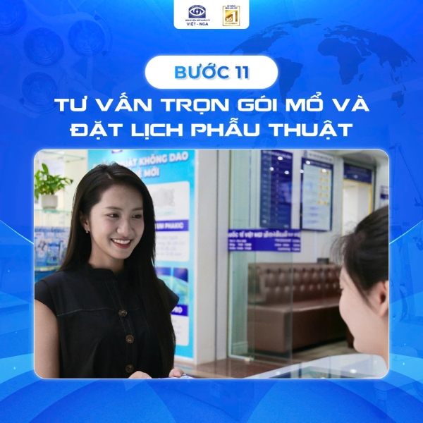 Click vào từng hình ảnh bên dưới để tìm hiểu chi tiết quy trình khám – mổ trong ngày và “bỏ túi” những lưu ý quan trọng khi xóa cận đón Tết tại Mắt Việt – Nga, giúp bạn sẵn sàng chào năm mới với thị lực rõ nét, trọn vẹn từng khoảnh khắc.