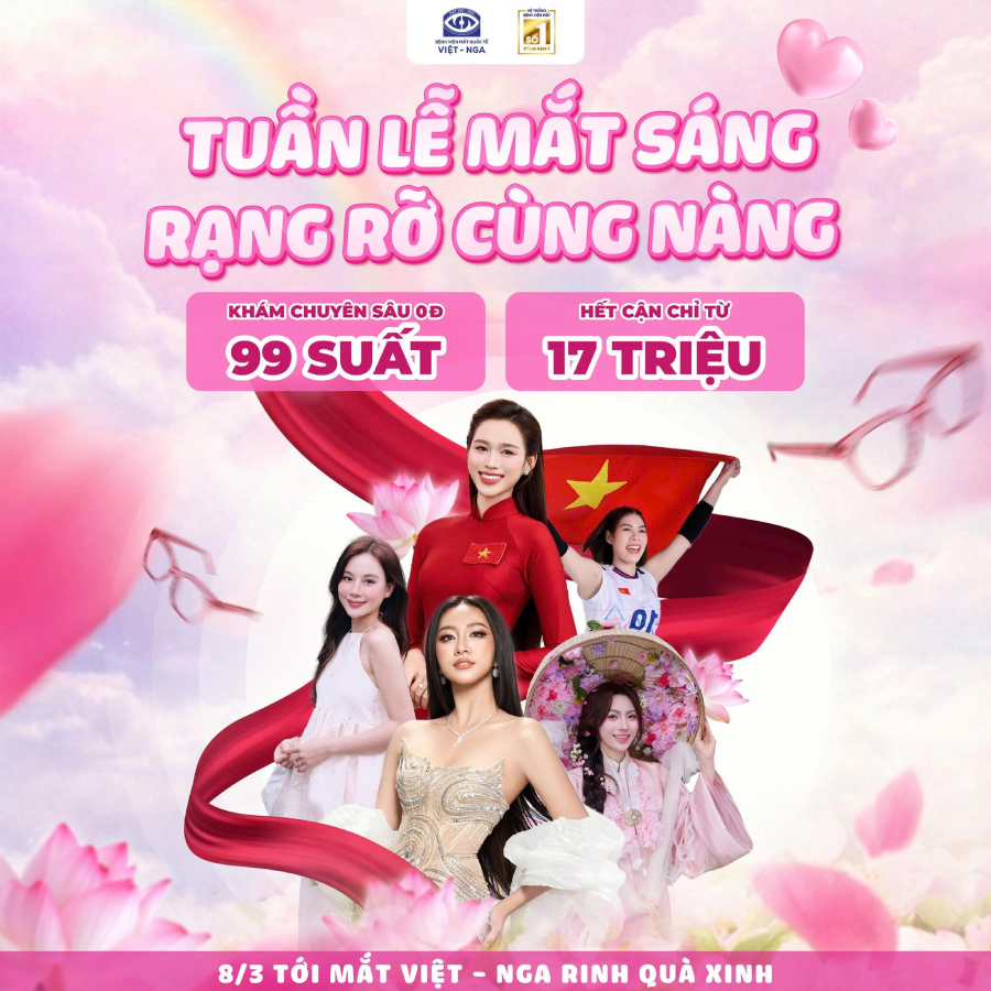 Nhân dịp Ngày Quốc tế Phụ nữ 8/3, Hệ thống Bệnh viện Mắt Quốc tế Việt - Nga triển khai chương trình ưu đãi đặc biệt trong tháng 3/2026 nhằm tri ân và mang đến những món quà ý nghĩa dành riêng cho phái đẹp và khách hàng xóa cận.